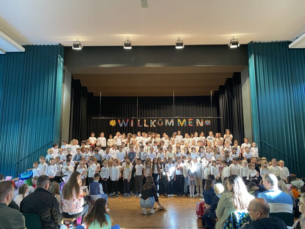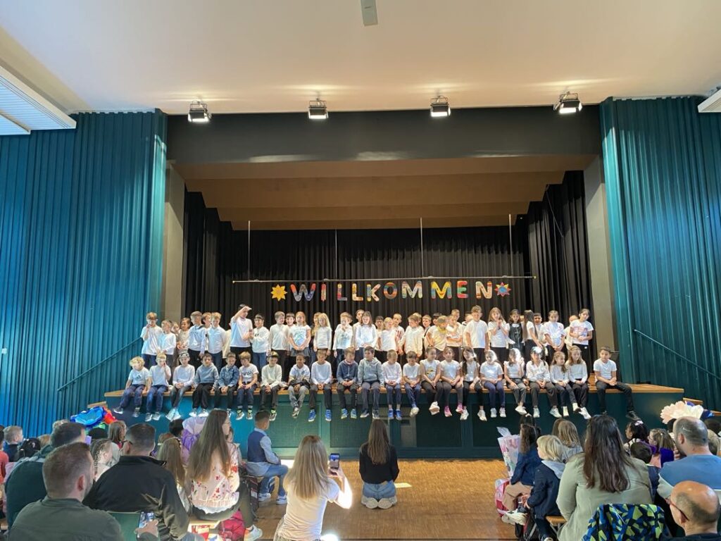 Zum Abschluss hieß die gesamte Schulgemeinschaft die neuen Kinder mit unserem Grundschullied willkommen.