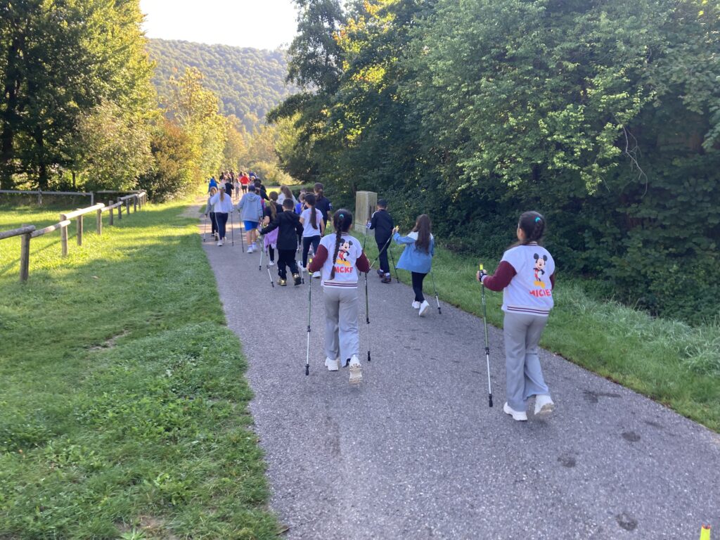Im Rahmen des Sportunterrichts haben wir Nordic Walking als sanfte Ausdauersportart eingeführt. Die Kinder sind begeistert: Das Gehen mit Stöcken fördert nicht nur die Koordination und Ausdauer, sondern stärkt auch das Bewusstsein für eine gesunde Lebensweise. Besonders schön ist es, dass wir dabei gemeinsam die Natur rund um unsere Schule erleben können.
